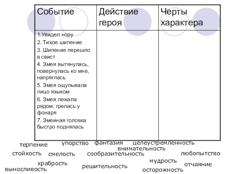 смелость храбростьсообразительностьвнимательностьосторожностьмудростьрешительностьстойкость терпениеупорствофантазияцелеустремленностьлюбопытствоотчаяниевыносливость