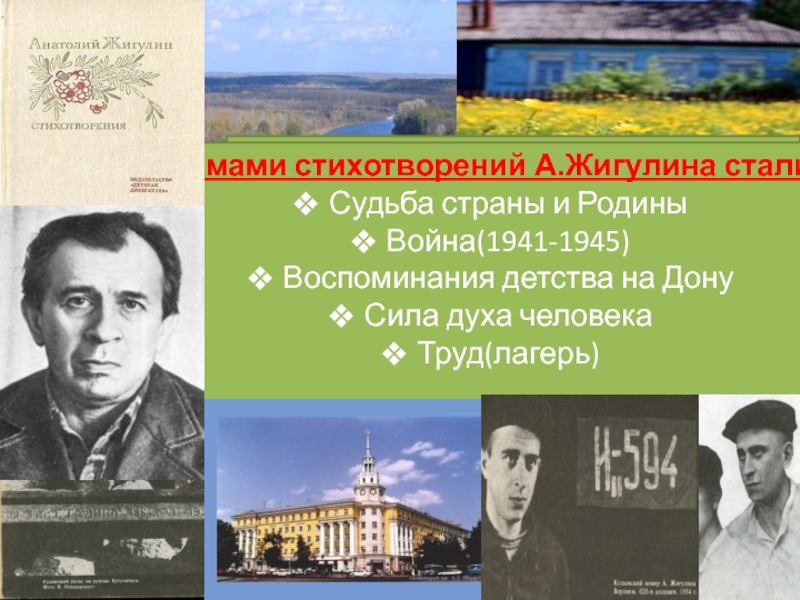 Темами стихотворений А.Жигулина стали: