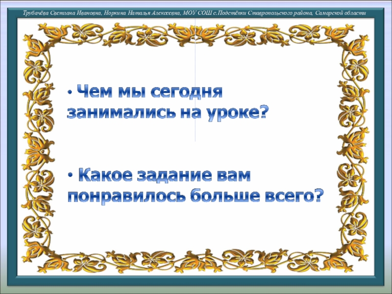Трубачёва Светлана Ивановна, Норкина Наталья Алексеевна, МОУ СОШ с.Подстёпки Ставропольского района, Самарской области