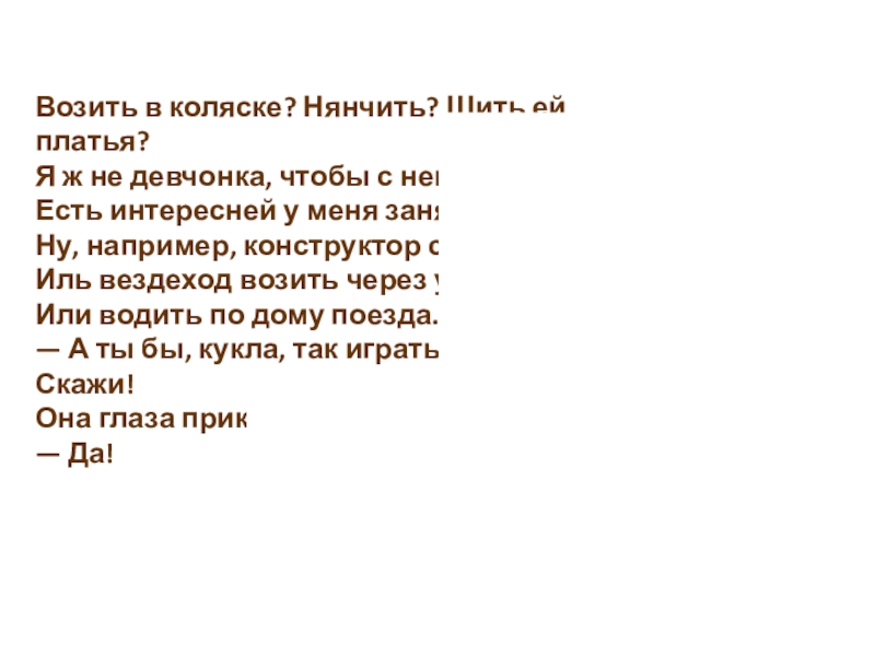 Прочитаем стихотворение Виктора Лунина «Кукла» и найдём ответ.