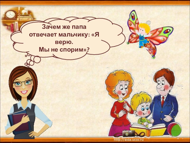 Мальчик просто фантазёр. А папа с уважением относится к его фантазиям!