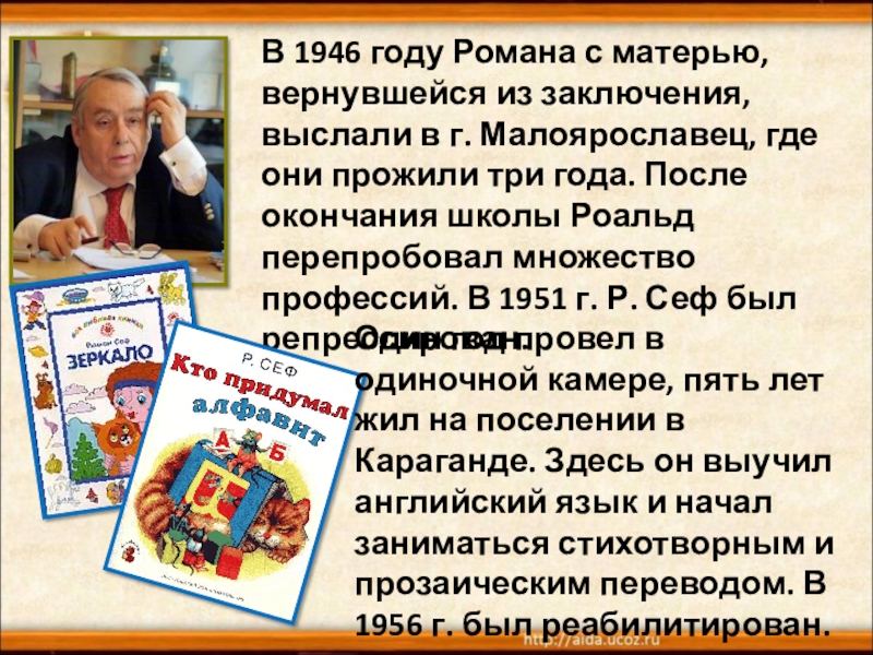 Один год провел в одиночной камере, пять лет жил на поселении в Караганде. Здесь он выучил английский язык и начал заниматься стихотворным и прозаическим переводом. В 1956 г. был реабилитирован.