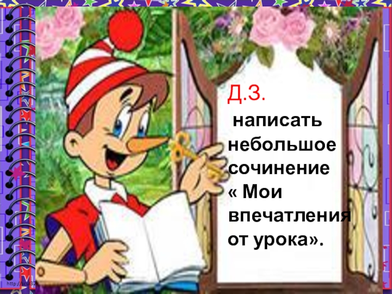 Д.З. написать небольшое сочинение « Мои впечатления от урока».