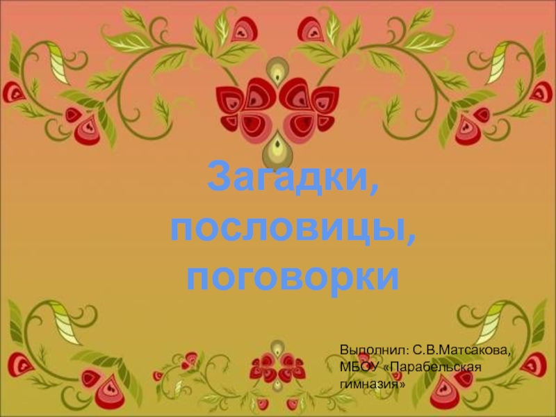Загадки, пословицы, поговоркиВыполнил: С.В.Матсакова,МБОУ «Парабельская гимназия»