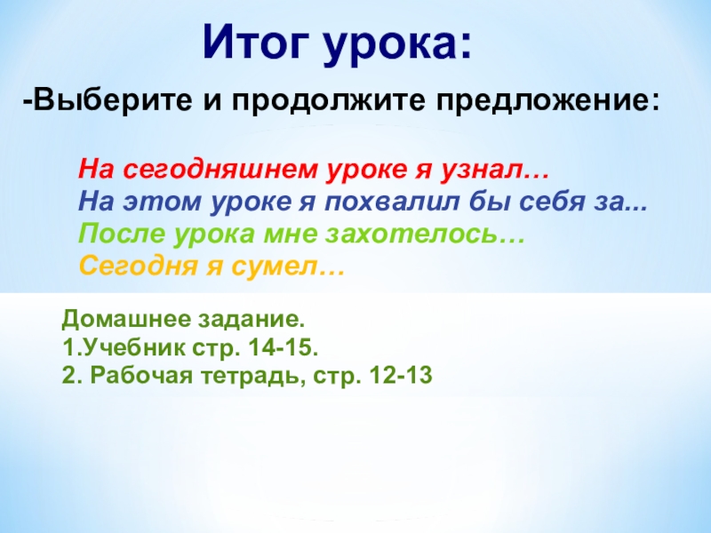 Итог урока: