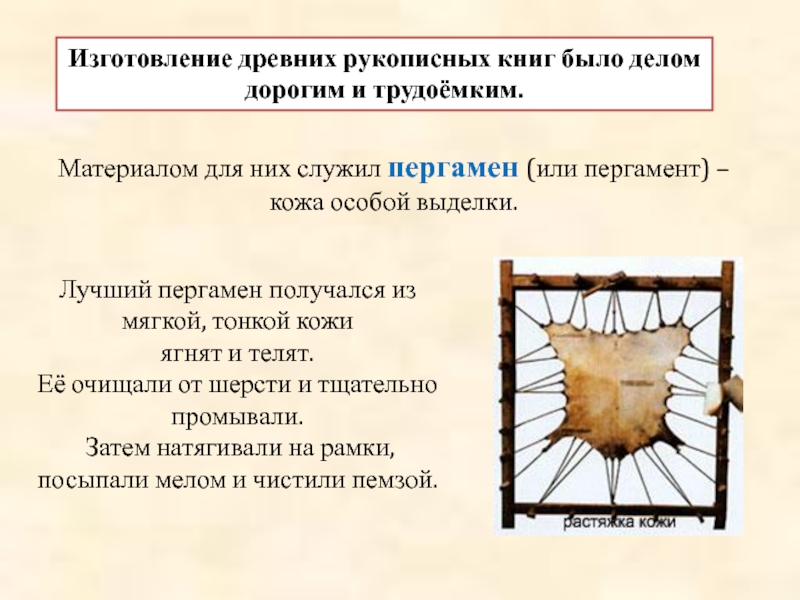 Затем натягивали на рамки, посыпали мелом и чистили пемзой.
