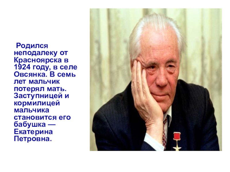 Слайд 13Родился я неподалеку от Красноярска в 1924 году, в селе Овсянка…»