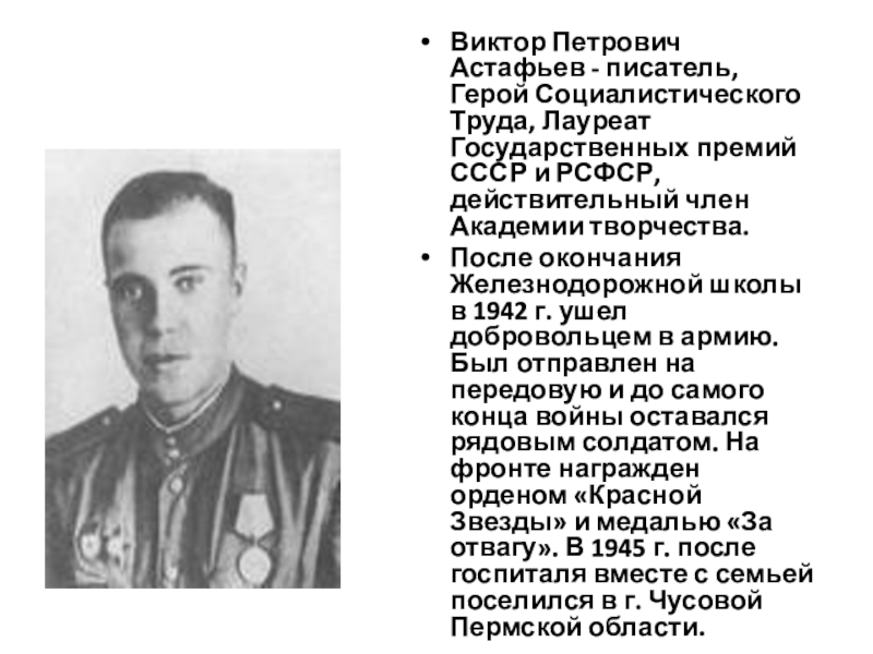 Слайд 14Виктор Петрович Астафьев - писатель, Герой Социалистического Труда, Лауреат Государственных премий