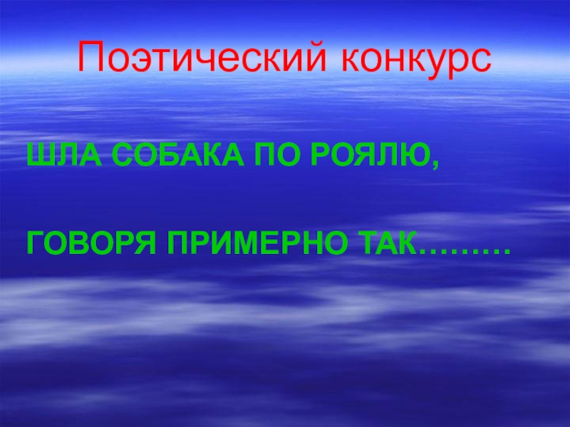 Поэтический конкурсШЛА СОБАКА ПО РОЯЛЮ,ГОВОРЯ ПРИМЕРНО ТАК………
