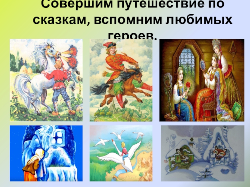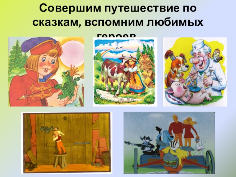 Слайд 4Совершим путешествие по сказкам, вспомним любимых героев.