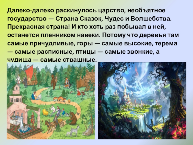 Слайд 2Далеко-далеко раскинулось царство, необъятное государство — Страна Сказок, Чу­дес и Волшебства.