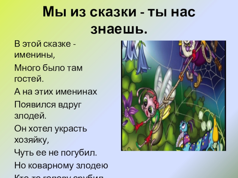 Мы из сказки - ты нас знаешь. В этой сказке - именины,Много было там гостей.А на этих