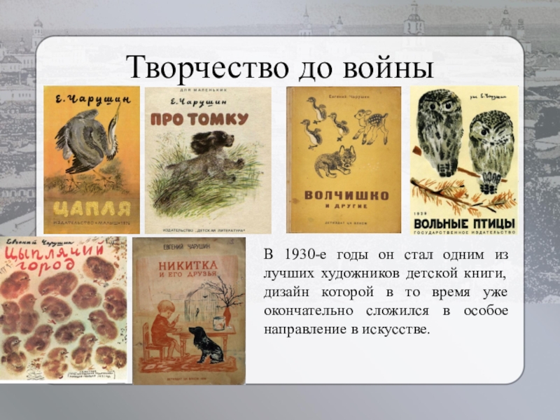 Творчество до войны В 1930-е годы он стал одним из лучших художников детской книги, дизайн которой в