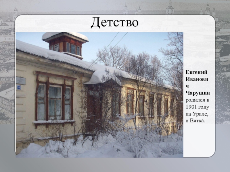 Детство Евгений Иванович Чарушин родился в 1901 году на Урале, в Вятка.