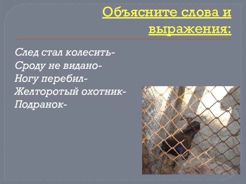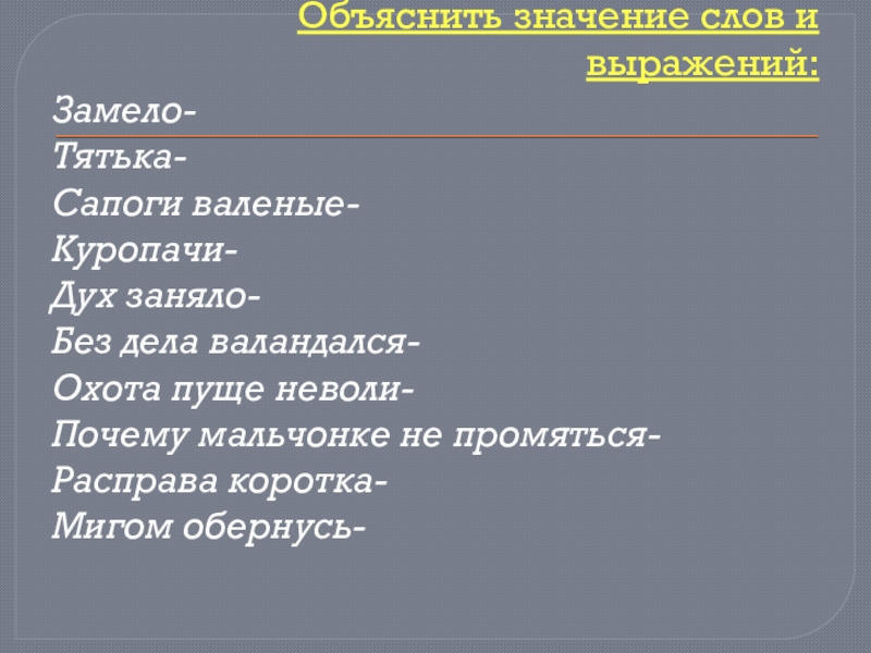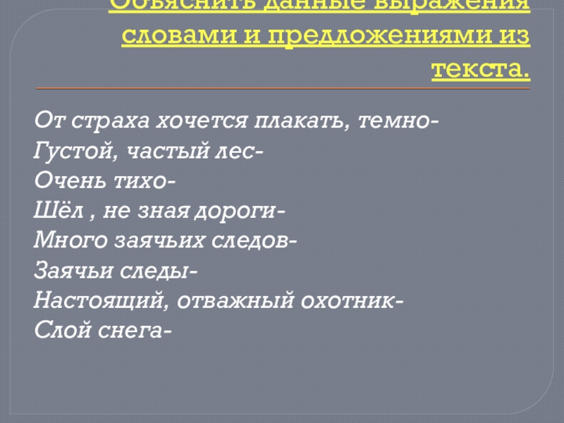 Слайд 12Объяснить данные выражения словами и предложениями из текста.