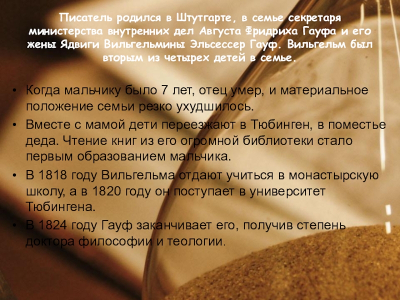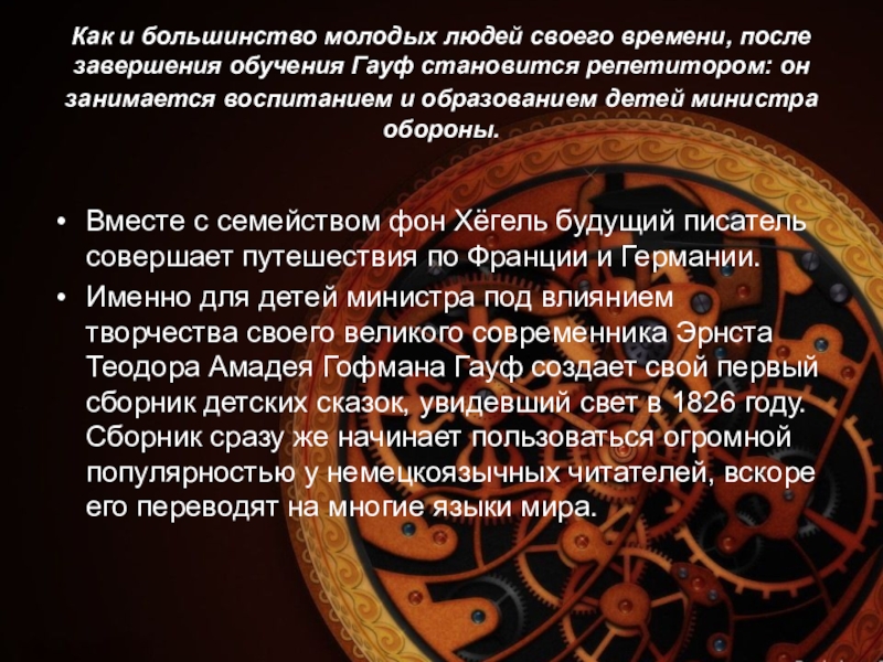 В 1824 году Гауф заканчивает его, получив степень доктора философии и теологии.