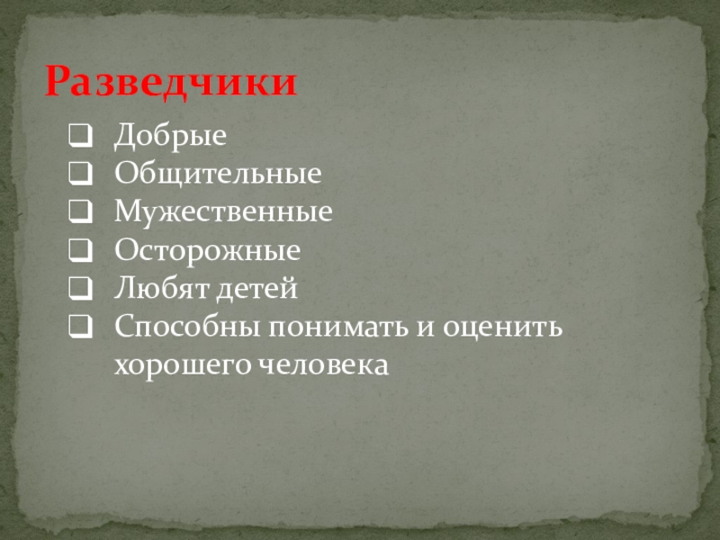 Слайд 13Мальчик поселился у разведчиков. Вскоре Биденко и Горбунову дали задание: перед боем разведать