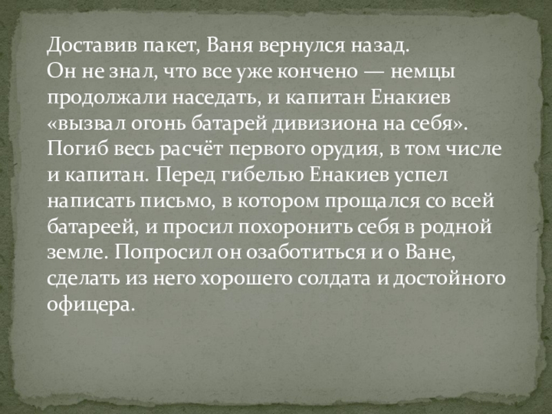 Слайд 22Доставив пакет, Ваня вернулся назад. Он не знал, что все уже кончено — немцы