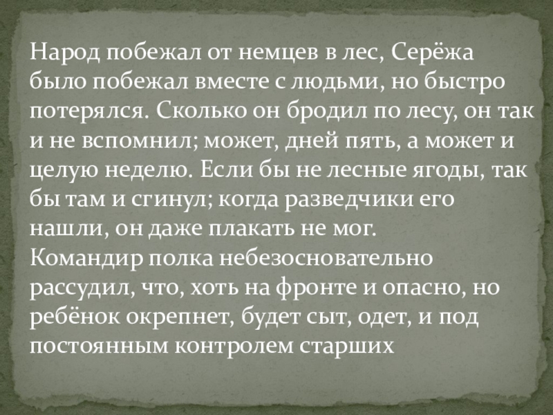 Слайд 35Народ побежал от немцев в лес, Серёжа было побежал вместе с
