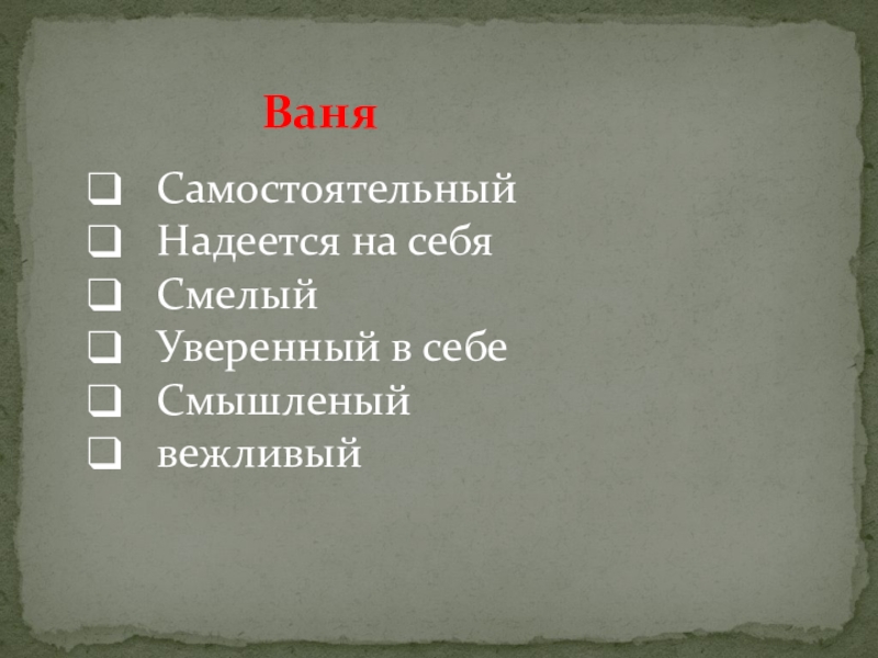 довольствие». «У Вани была счастливая способность нравиться людям с первого взгляда».