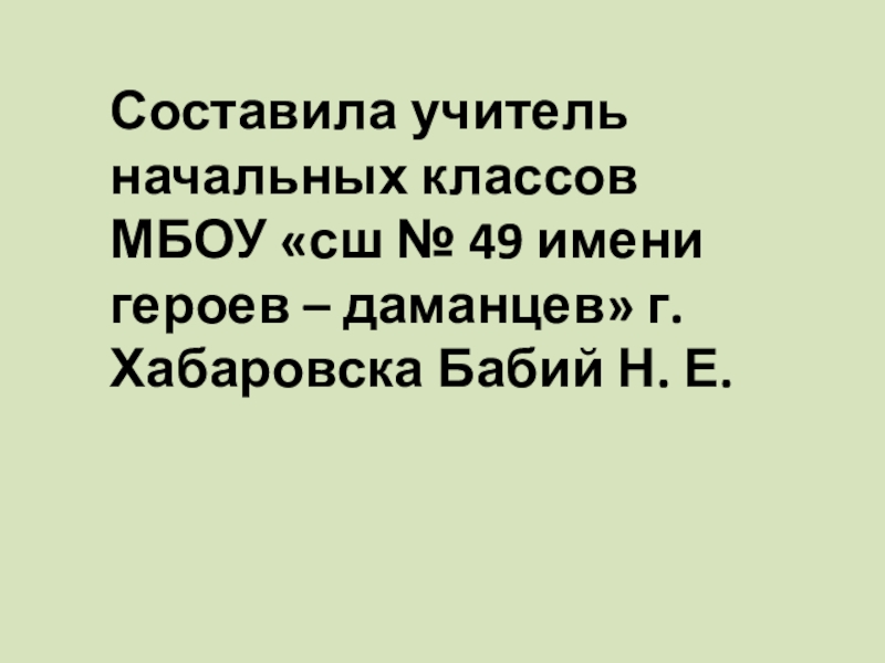 Составила учитель начальных классов МБОУ «сш № 49 имени героев – даманцев» г. Хабаровска Бабий Н. Е.