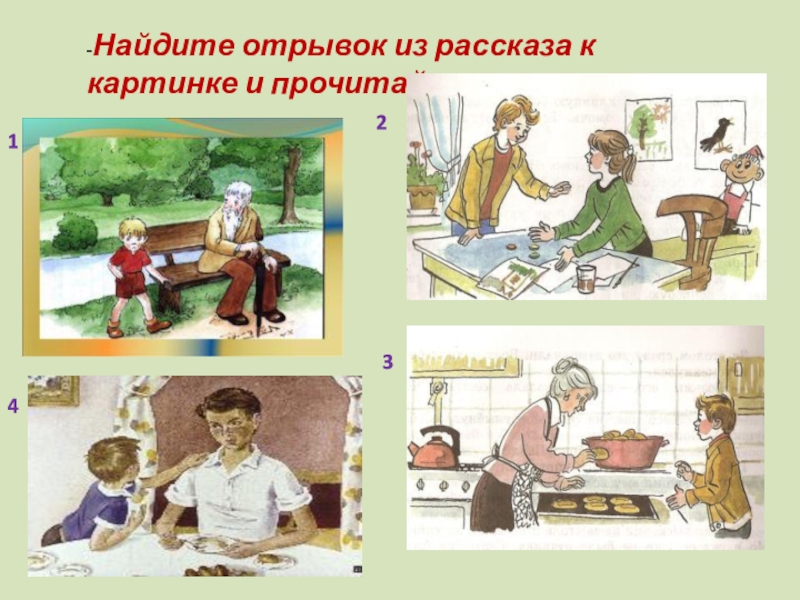 -Найдите отрывок из рассказа к картинке и прочитайте.1234