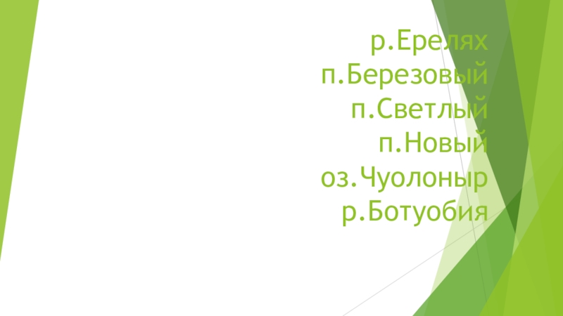 Слайд 7р.Ерелях п.Березовый п.Светлый п.Новый оз.Чуолоныр р.Ботуобия