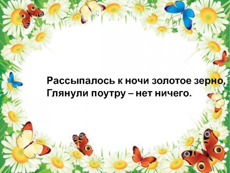Рассыпалось к ночи золотое зерно,Глянули поутру – нет ничего.