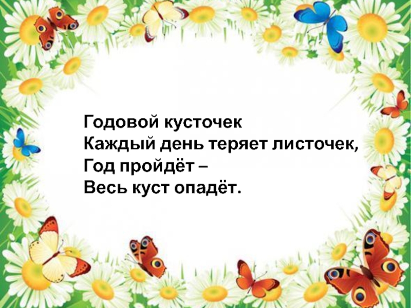 Годовой кусточекКаждый день теряет листочек,Год пройдёт –Весь куст опадёт.