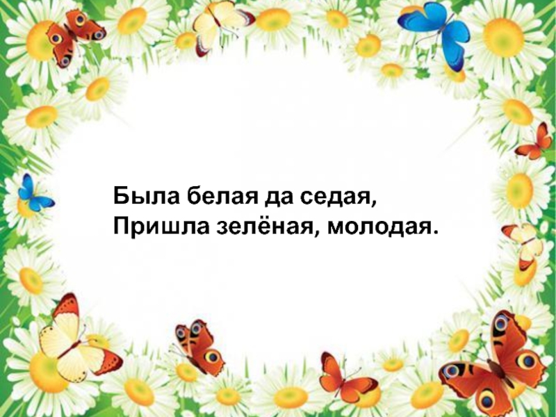 Вышел старик-годовик, махнул рукавом,И полетели 12 птиц,У каждой птицы по 4 крыла,В каждом крыле по 7 перьев,Каждое