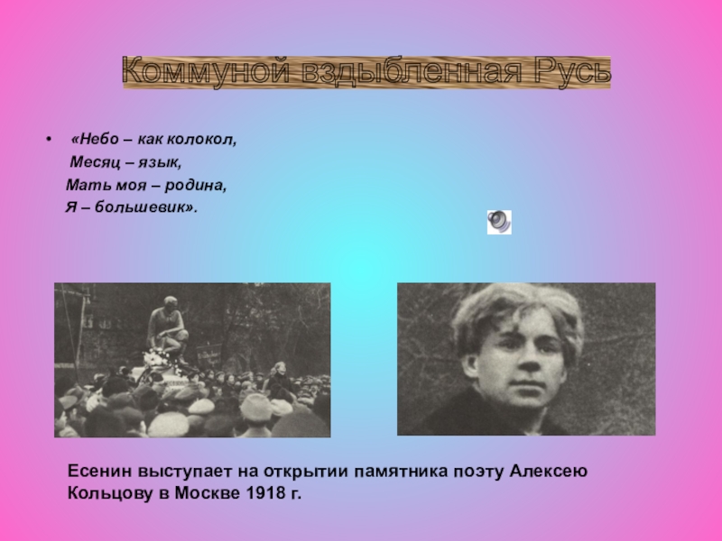 Есенин выступает на открытии памятника поэту Алексею Кольцову в Москве 1918 г.