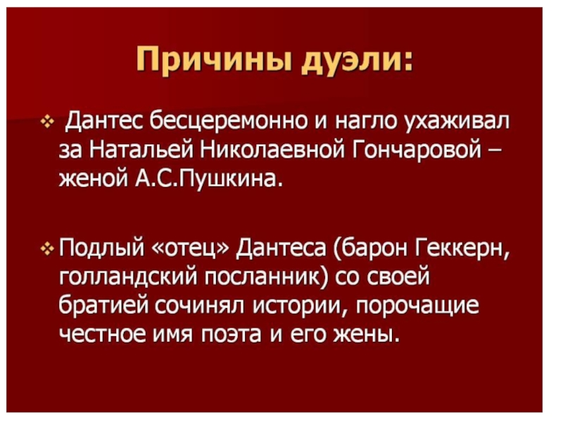 Дуэль с Дантесом была 21 –ой в жизни А.С.Пушкина