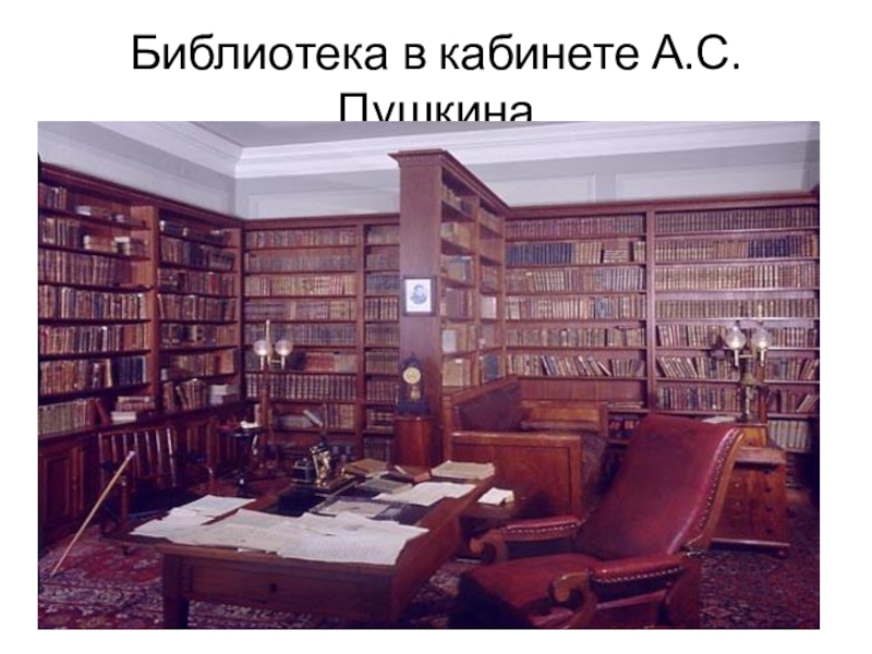 Слайд 5Библиотека в кабинете А.С.Пушкина
