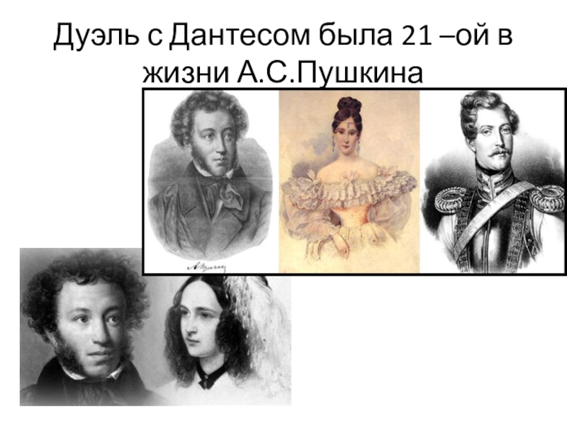 Слайд 17Дуэль с Дантесом была 21 –ой в жизни А.С.Пушкина