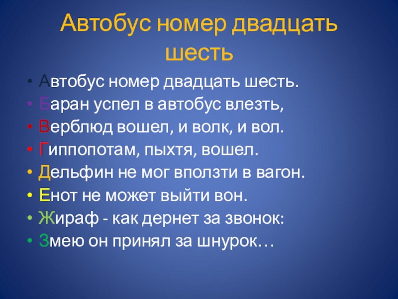 Слайд 10Автобус номер двадцать шесть