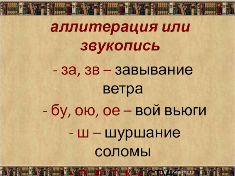 Слайд 11аллитерация или звукопись