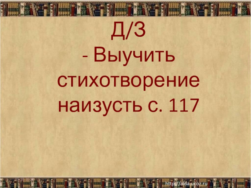 Слайд 16Д/З - Выучить стихотворение наизусть с. 117
