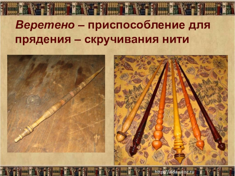 Слайд 9Веретено – приспособление для прядения – скручивания нити