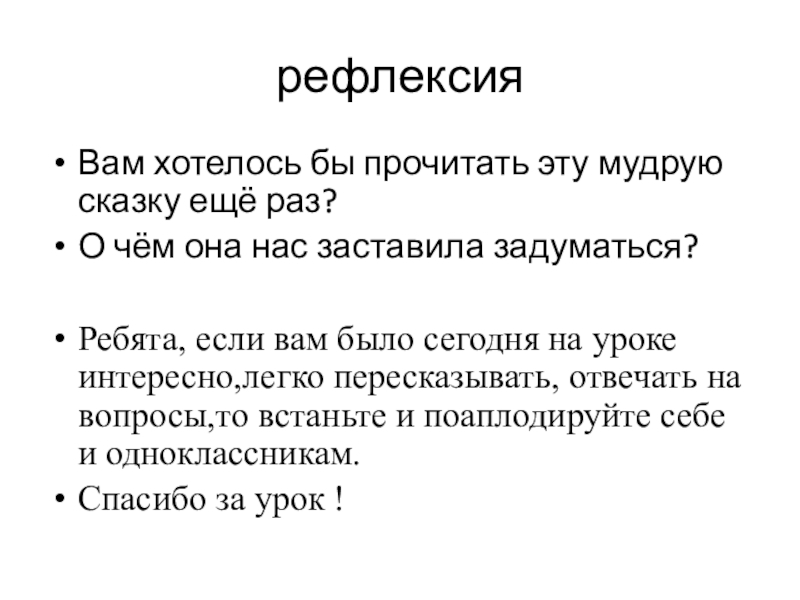 Ребята, если вам было сегодня на уроке интересно,легко пересказывать, отвечать на вопросы,то встаньте и поаплодируйте себе и одноклассникам.