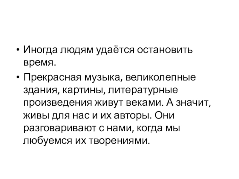 живут веками. А значит, живы для нас и их авторы. Они разговаривают с нами, когда мы любуемся их творениями.