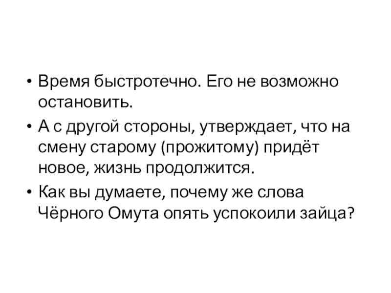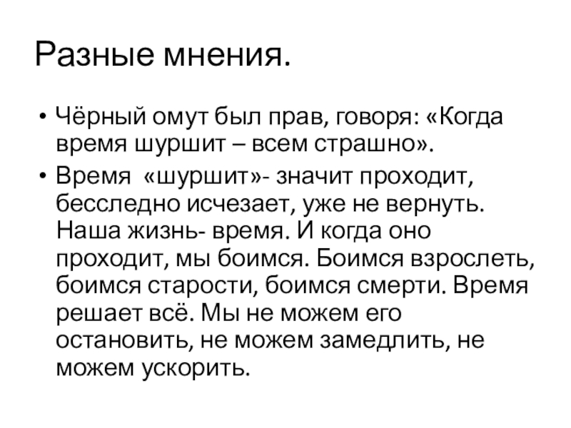 Как вы понимаете слова Чёрного Омута о шуршании времени?