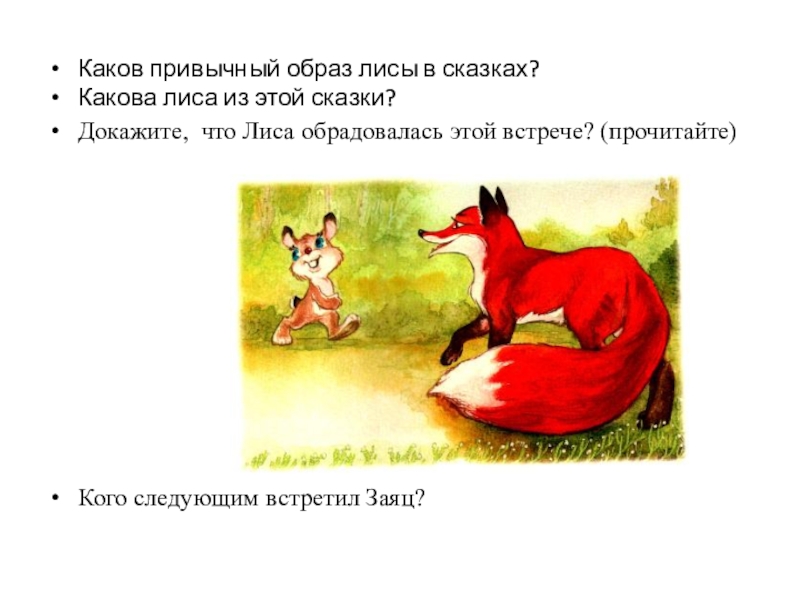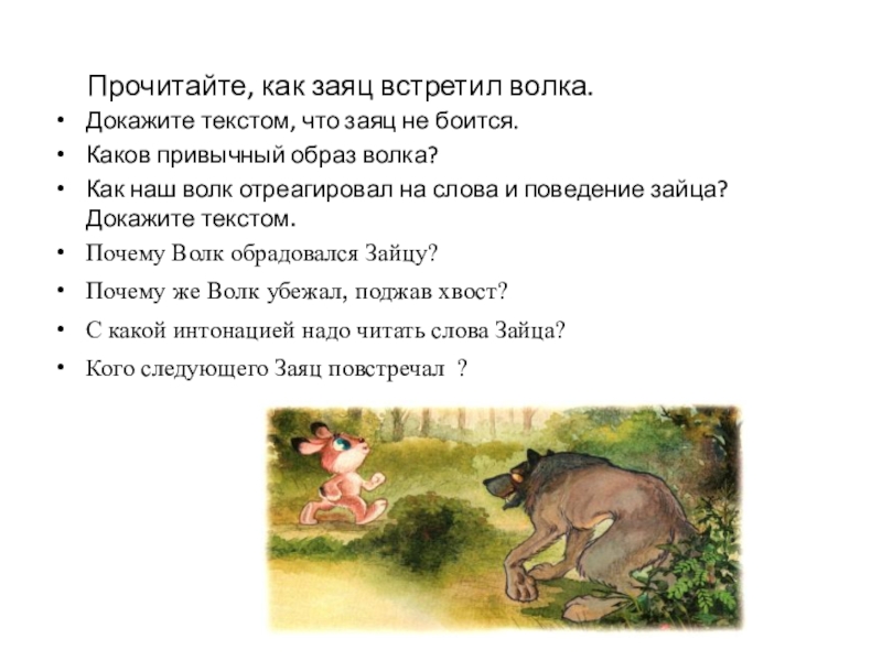 Слайд 11 Прочитайте, как заяц встретил волка.