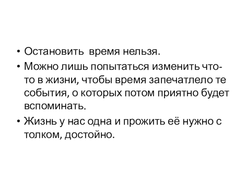 Слайд 15Время быстротечно. Его не возможно остановить.