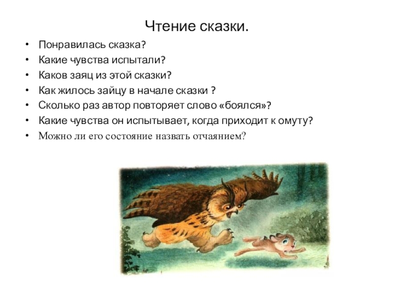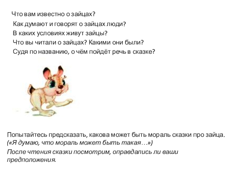Попытайтесь предсказать, какова может быть мораль сказки про зайца. («Я думаю, что мораль может быть такая…»)