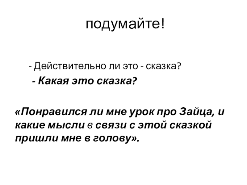 «Понравился ли мне урок про Зайца, и какие мысли в связи с этой сказкой пришли мне в голову».