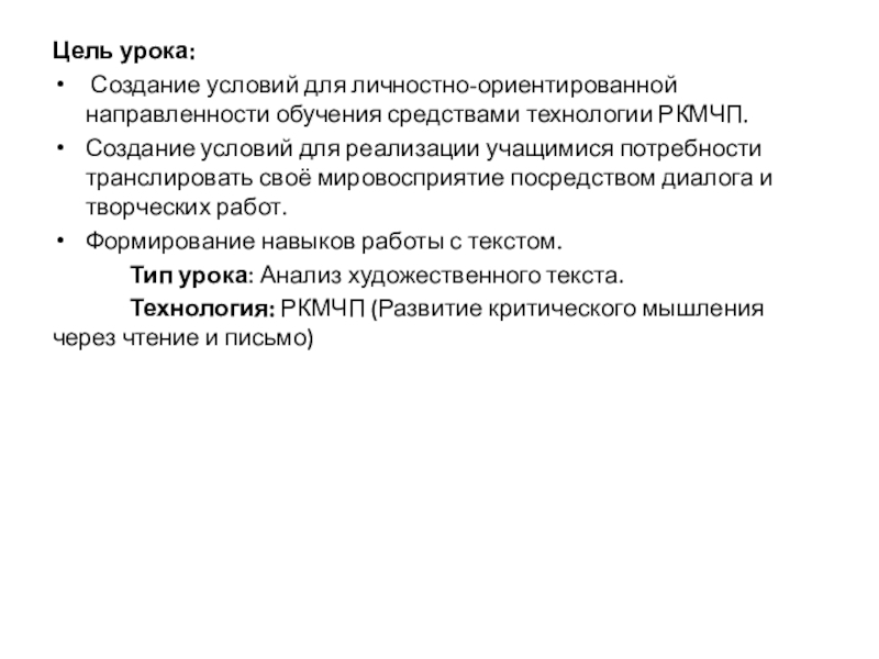 Создание условий для личностно-ориентированной направленности обучения средствами технологии РКМЧП.