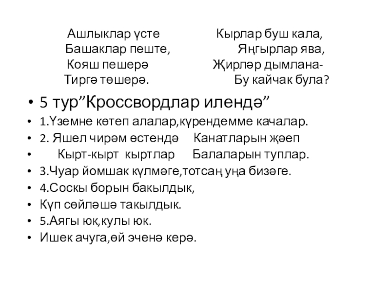 5 тур”Кроссвордлар илендә”