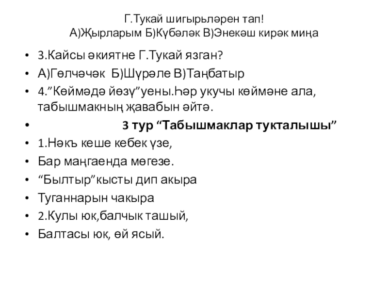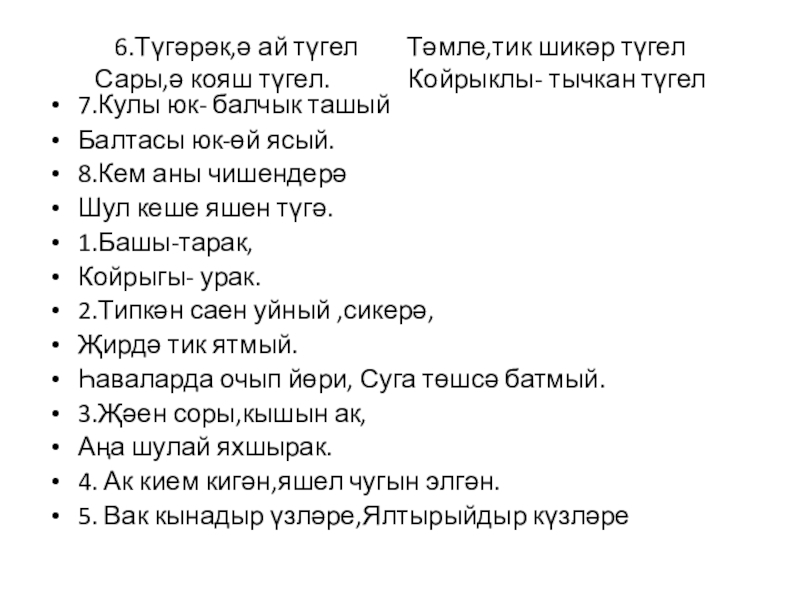 5. Вак кынадыр үзләре,Ялтырыйдыр күзләре