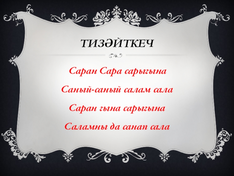 Тизәйткеч Саран Сара сарыгына Саный-саный салам салаСаран гына сарыгынаСаламны да санап сала
