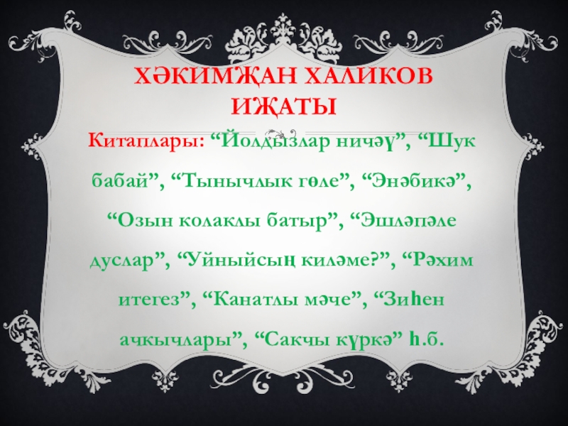 Слайд 4Хәкимҗан Халиков иҗаты